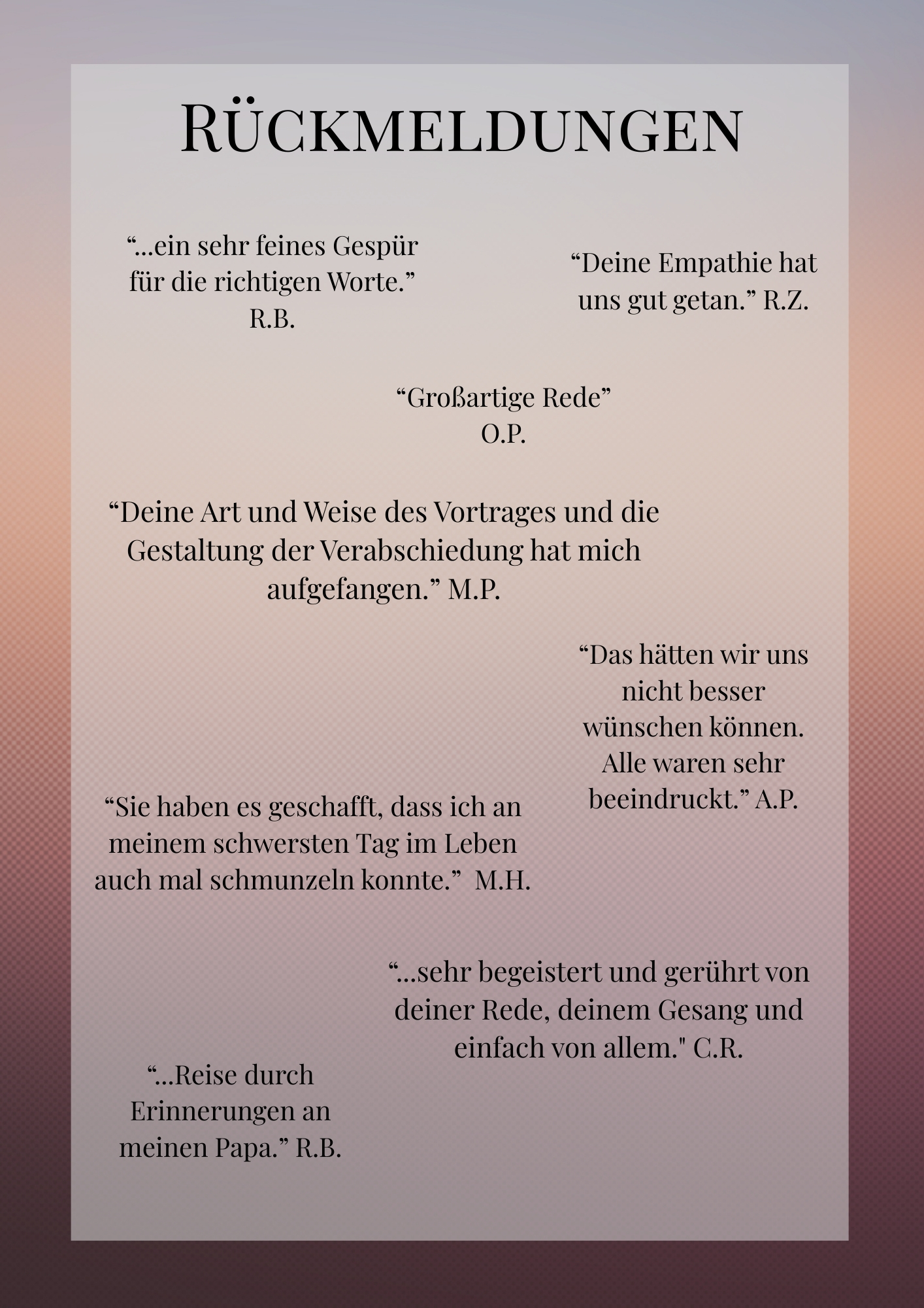 - Live-Gesang bei Trauerfeiern, Gesang und Rede in Kombination oder einzeln buchbar