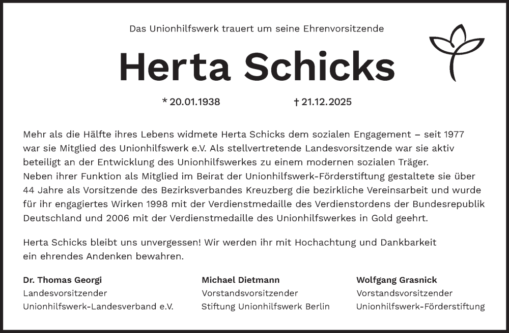 Hier finden Sie alle Traueranzeigen aus der Zeitung, die bisher für Herta Schicks erschienen sind. Weitere Traueranzeigen, die in der Zeitung erscheinen, werden hier ebenfalls aufgelistet